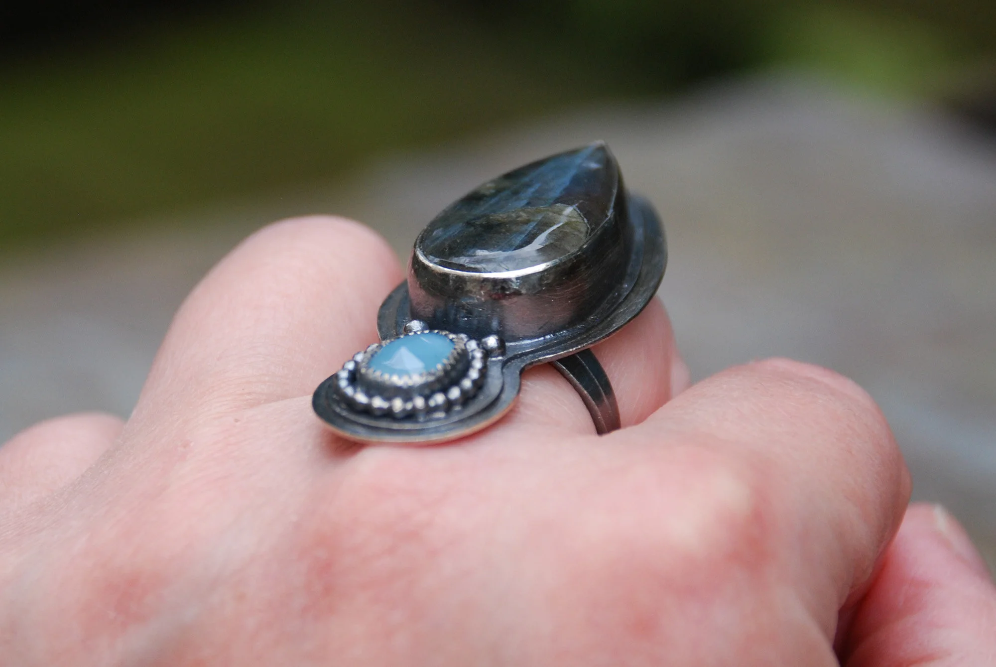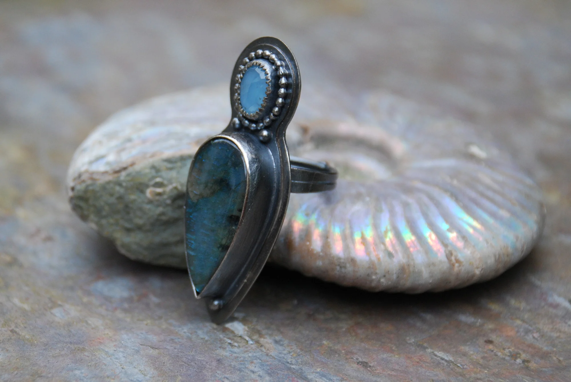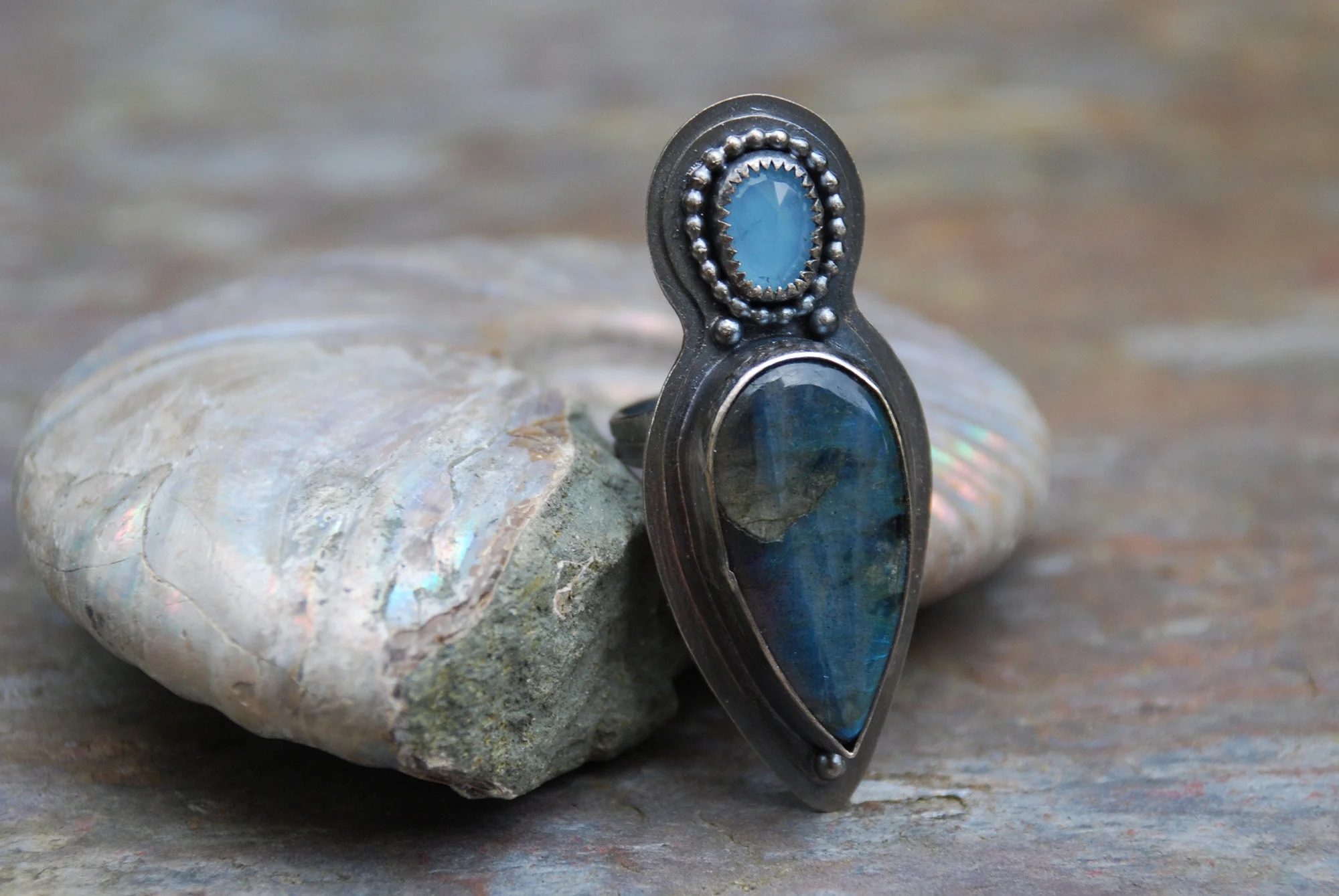 Song of the Seas, Laboradite and Aquamarine Sterling Silver Ring