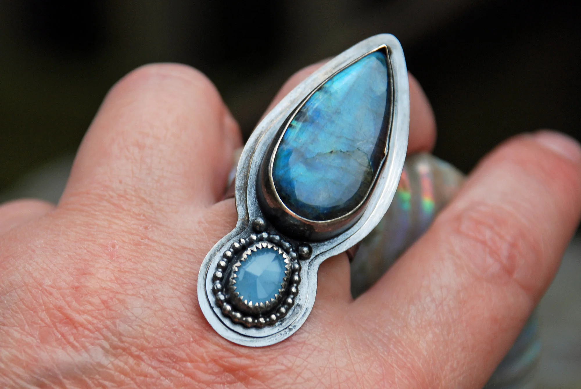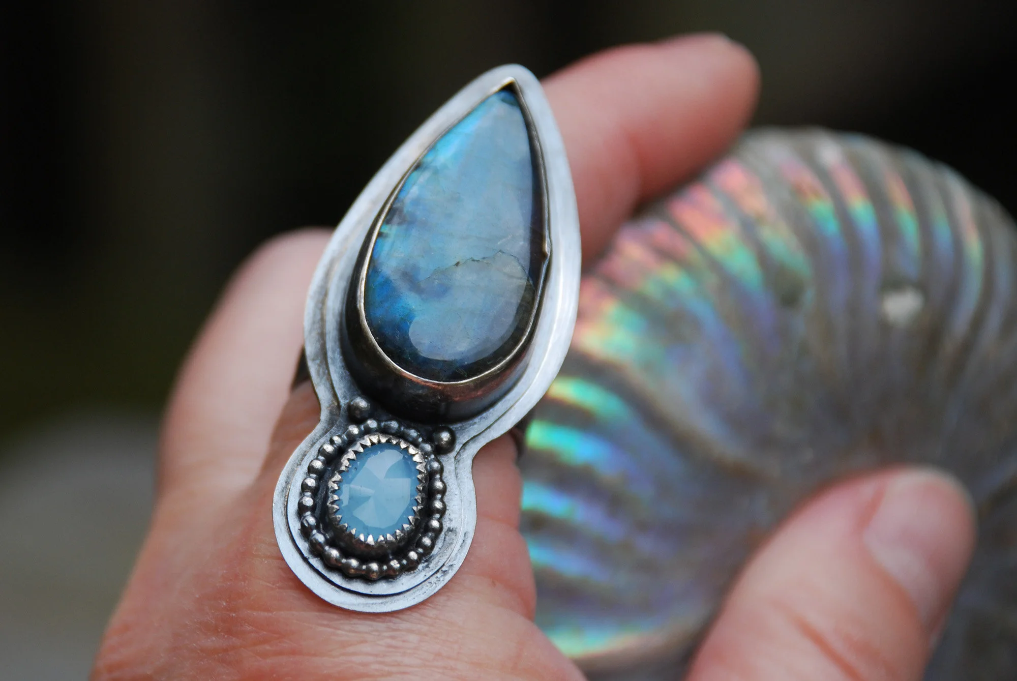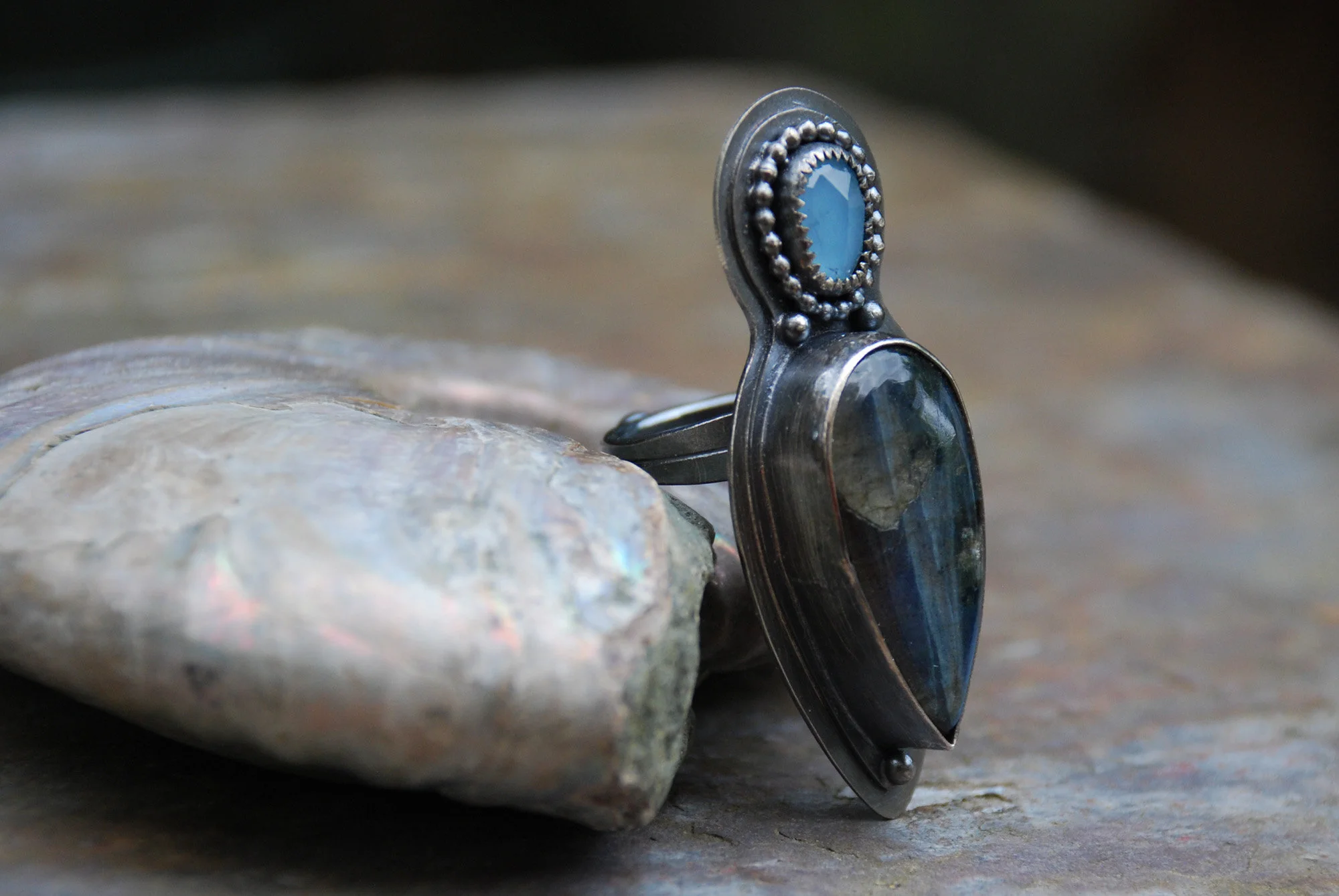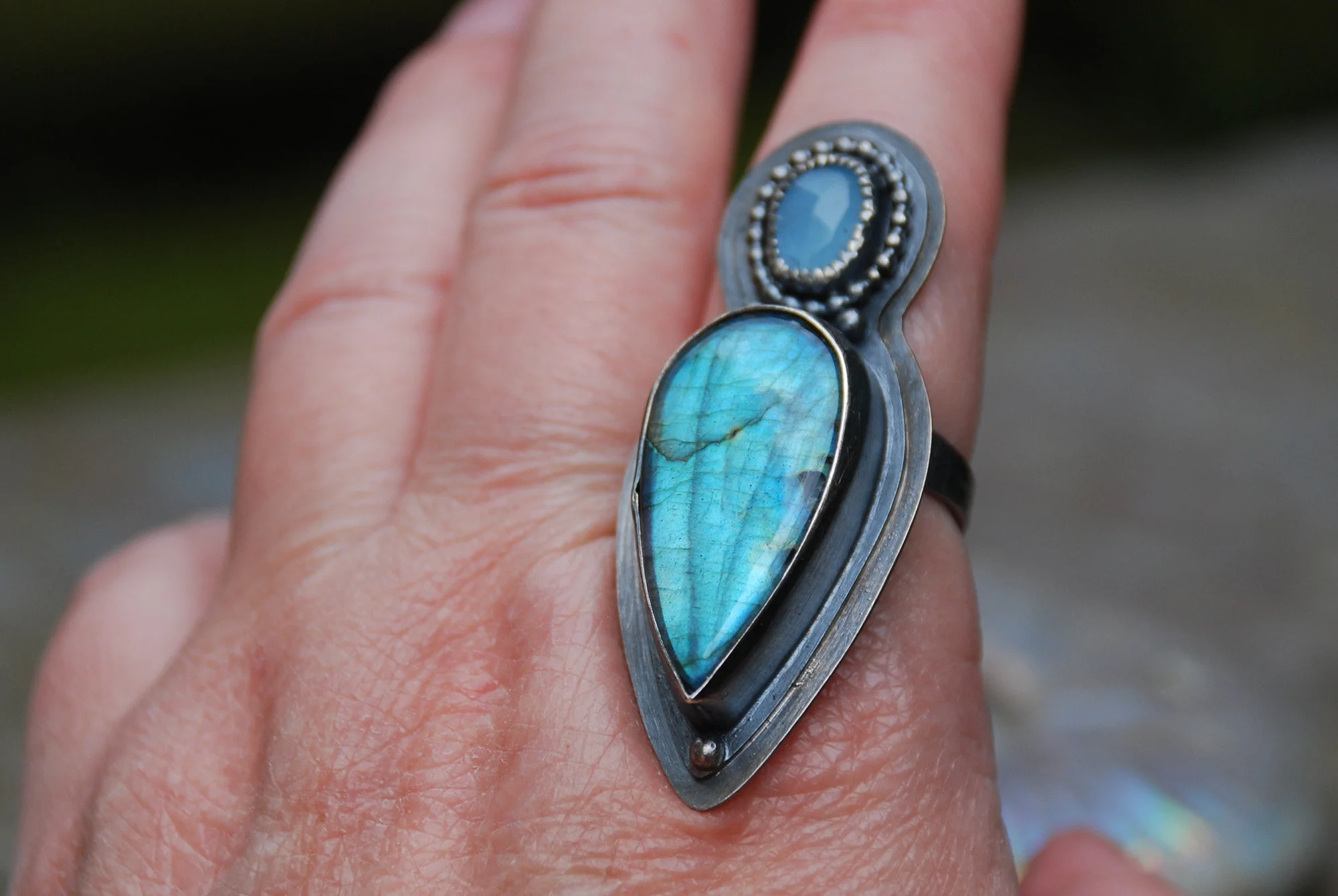 Song of the Seas, Laboradite and Aquamarine Sterling Silver Ring