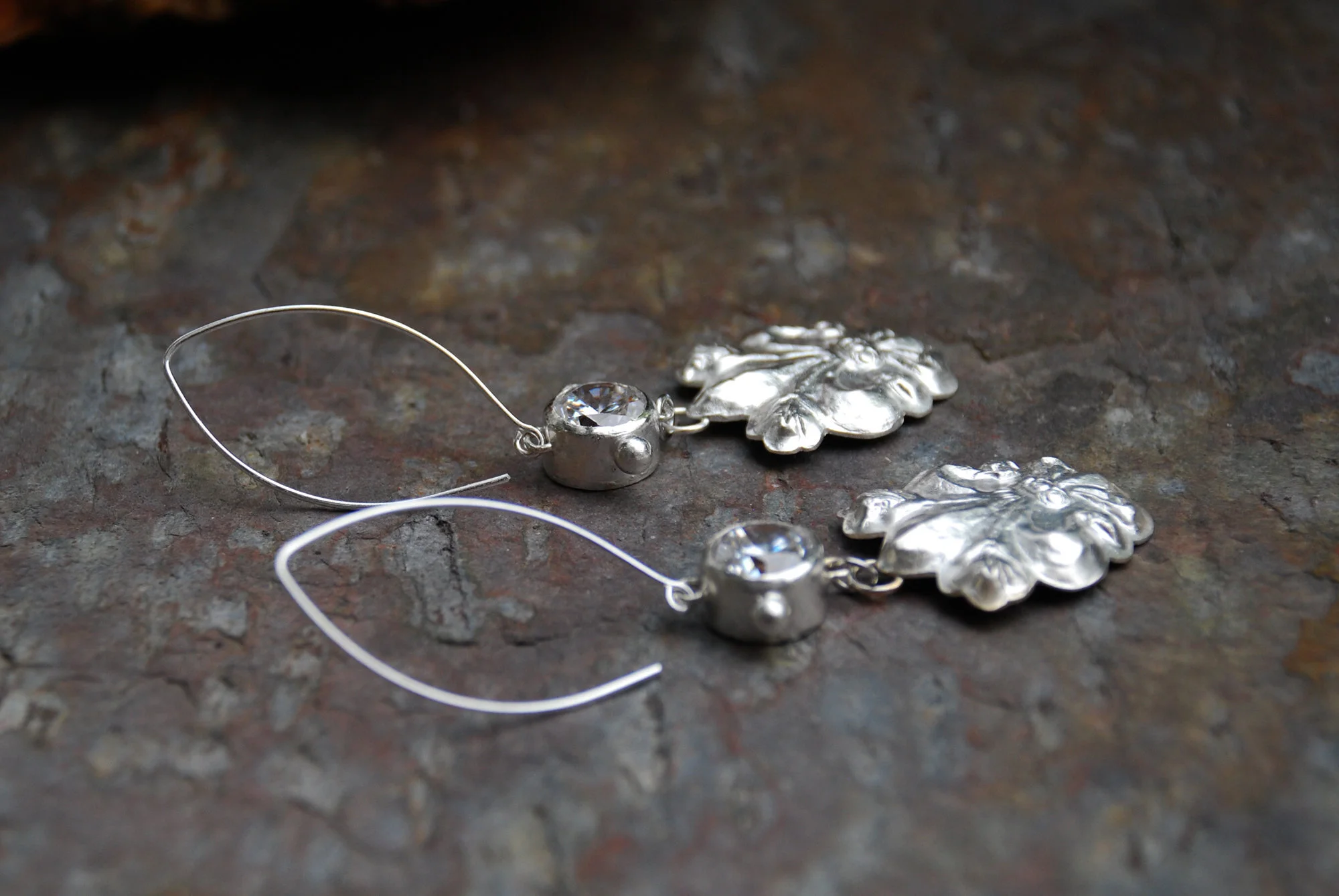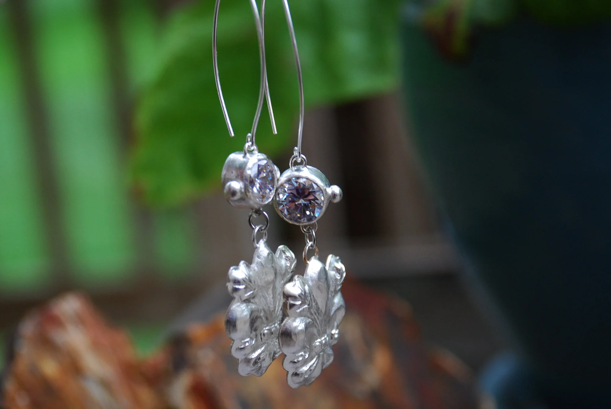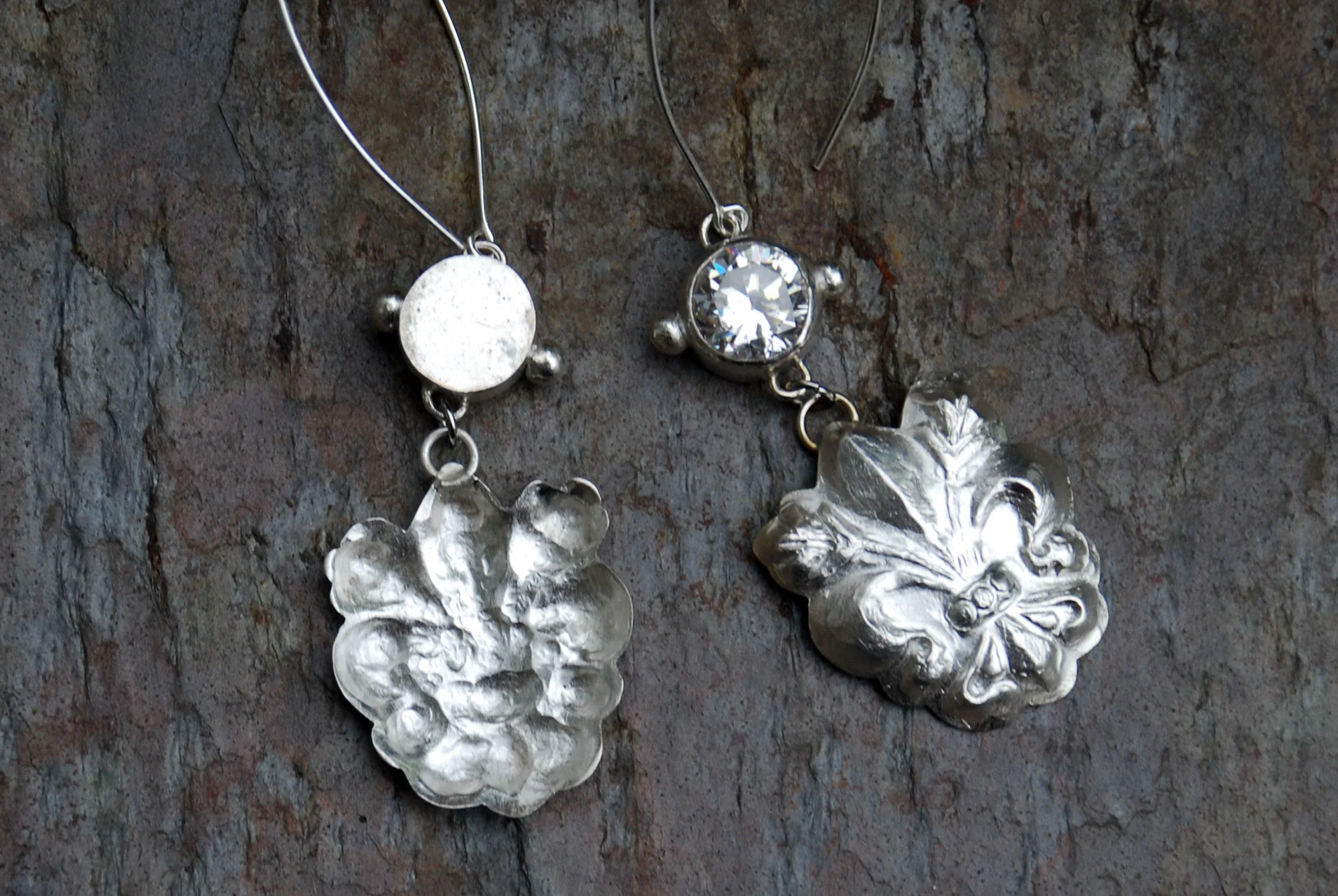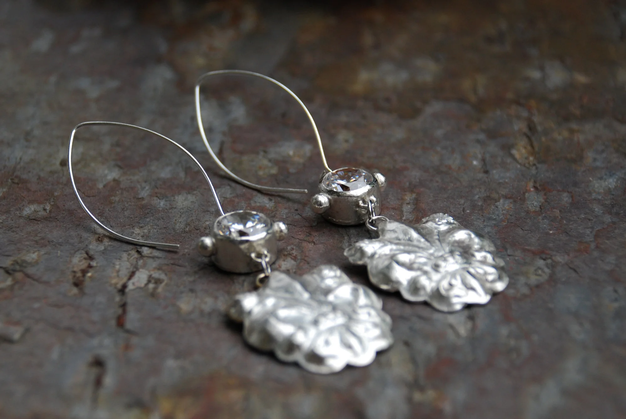 The fleur-de-lis is a stylized lily or iris commonly used for decoration. I've paired it with a large 10mm CZ. The fleur-de-lis has been hand forged from an impression die. 100% handmade. Sterling Silver. Total earring length is 3.25".