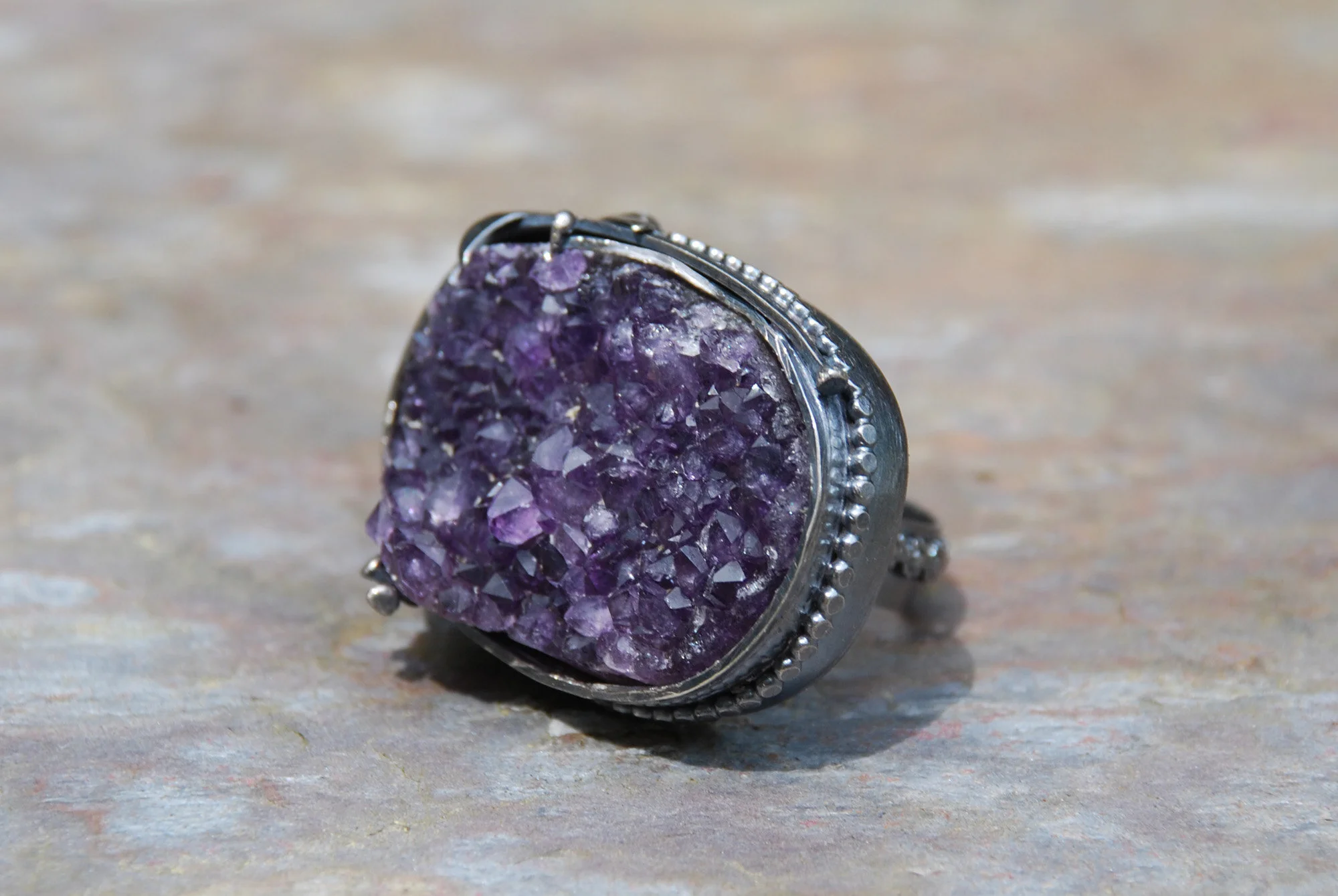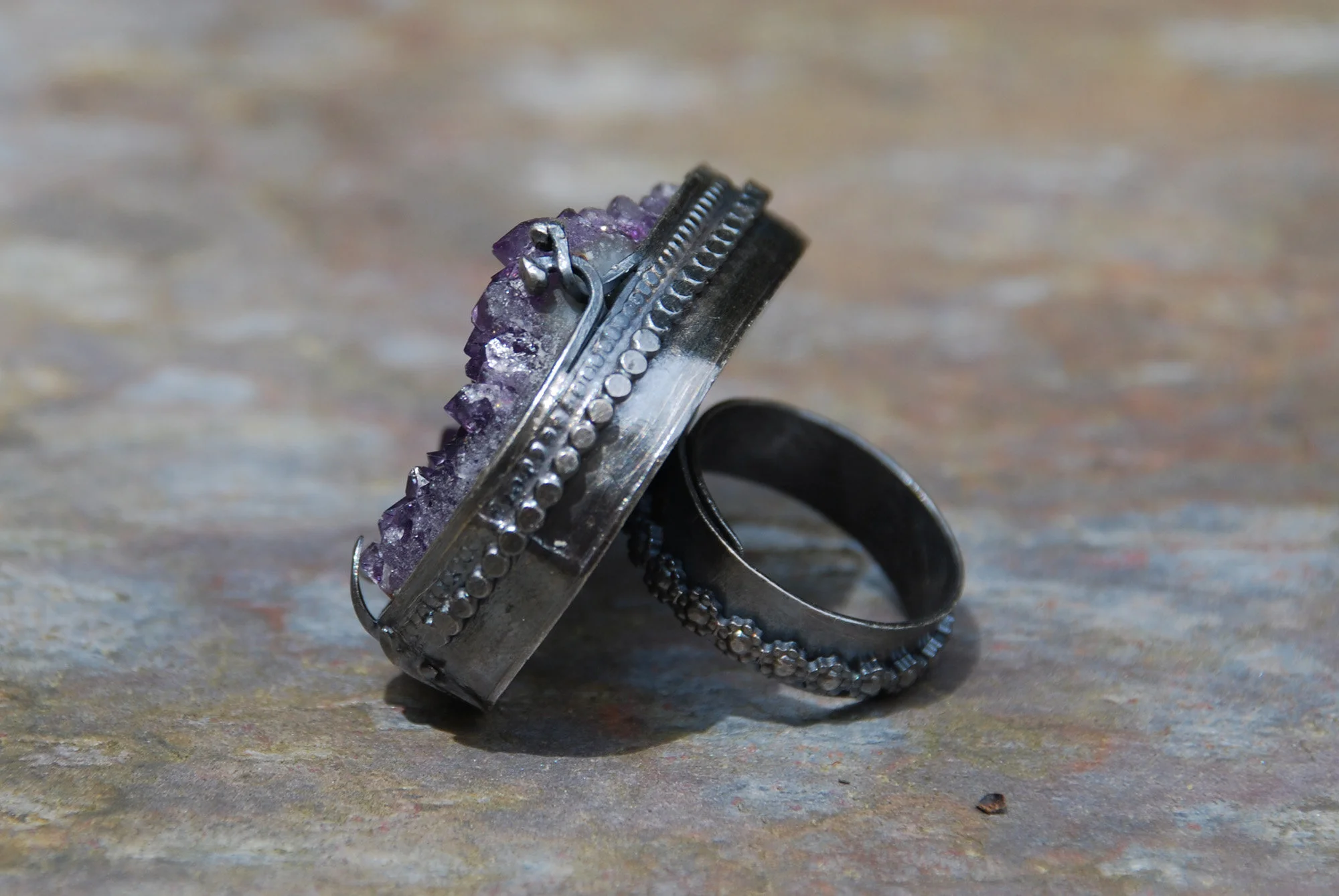 Tears of Dionysus, Amethyst Druzy Statement Ring