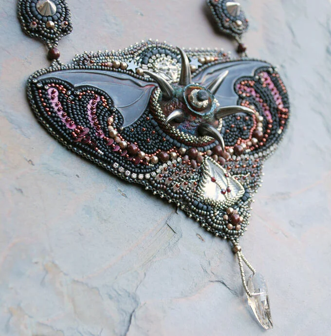 Vampire Slayer Bead Embroidered Statement Necklace
