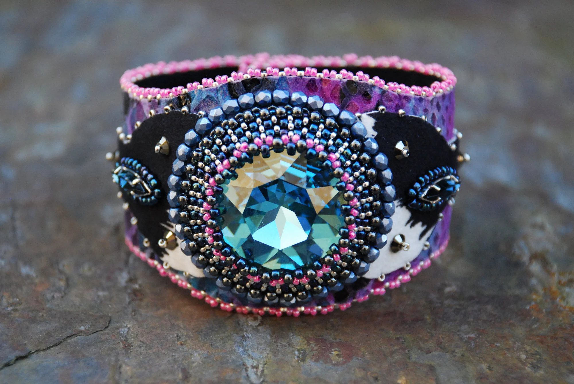 Sea Turtle Bead Embroidered Fish Leather Bracelet